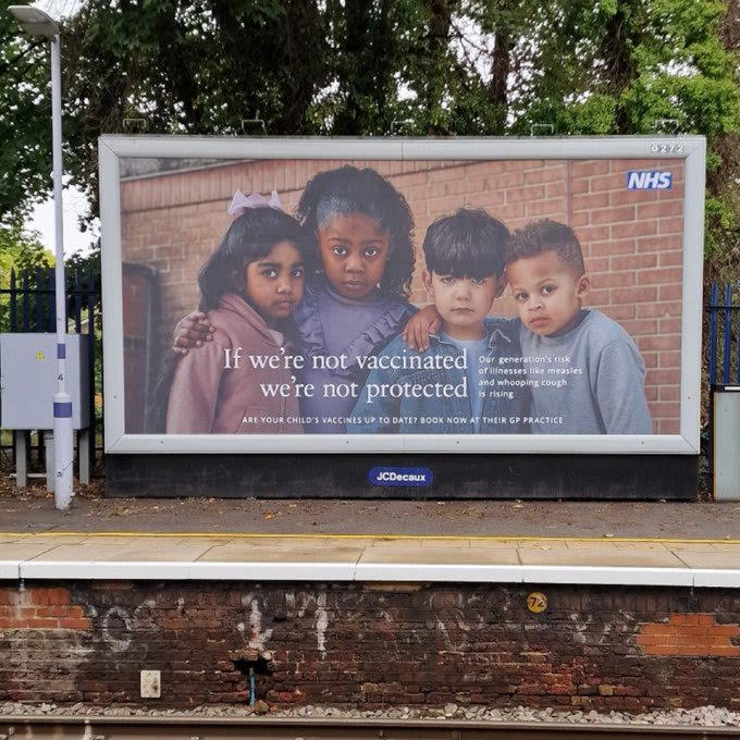 One of these signs has the words “No to mass immigration,” complete with a woman making a “stop” hand gesture.